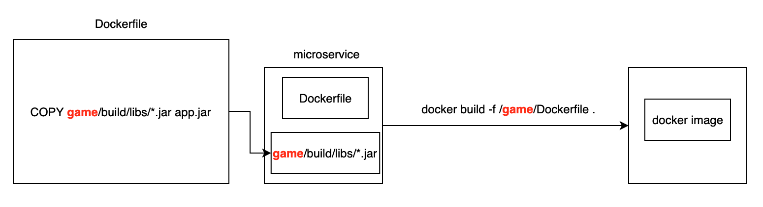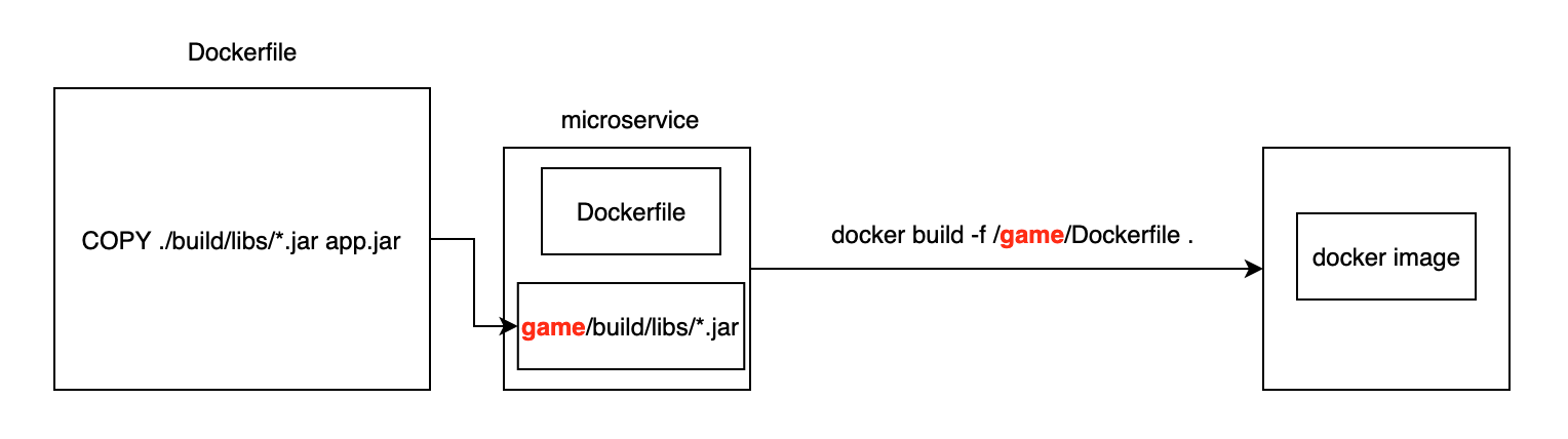 만약에 microservice라는 디렉토리에서 game 디렉토리의 Dockerfile을 빌드하면 다음과 같습니다.