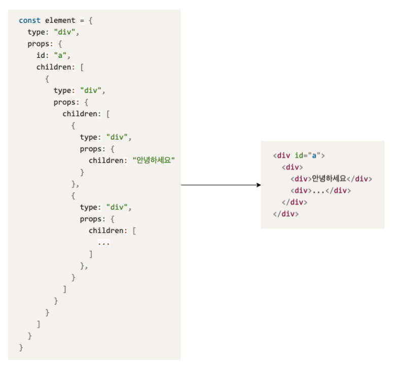 이 코드는 리액트에서 html dom에 렌더링하는 코드와 동일합니다.